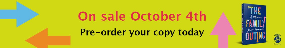The pre-order countdown is on for The Family Outing, which comes out October 4. And it really helps an author when readers pre-order. These purchases help determine how many books my favorite bookstores (like Books Are Magic, in the picture above!) will elect to carry, and whether an author will be invited to discuss the work. So if you’ve been meaning to, please consider doing it now!